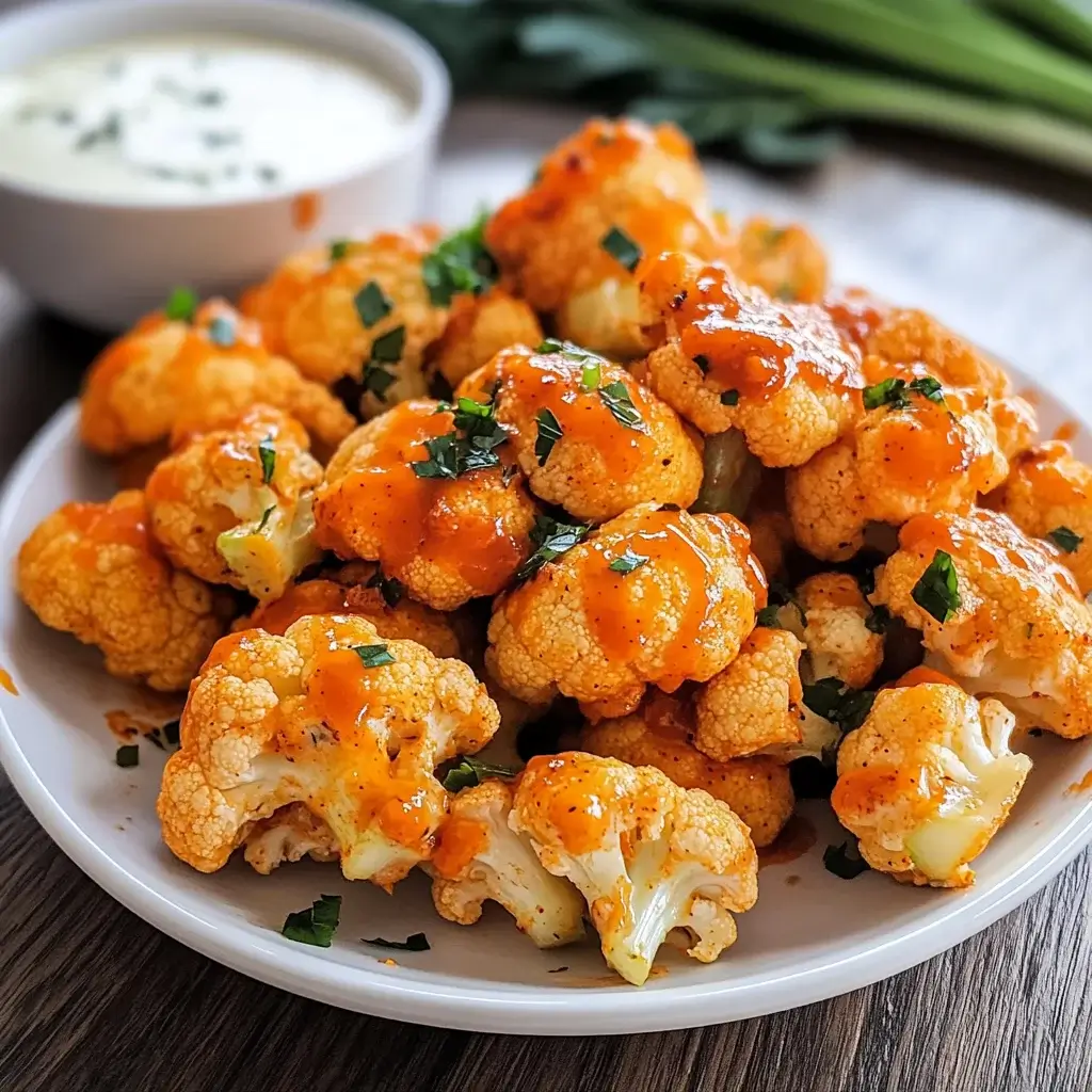 - Arrange the Cauliflower Buffalo Bites on a platter alongside vegan ranch or blue cheese dressing for dipping.